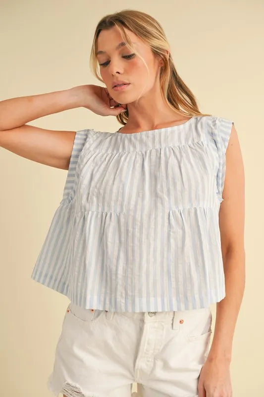 Aura Soft Ruched Striped Round Neck Sleeveless Top