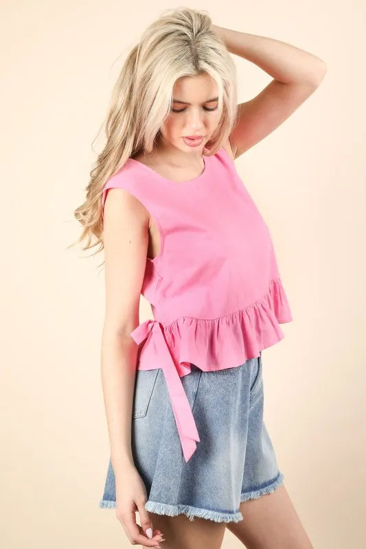 Cashmere Whisper Side Tie Detail Ruffled Sleeveless Top