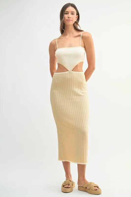 Opaline cut Ribbed Knit Color Block Cutout Midi Dress