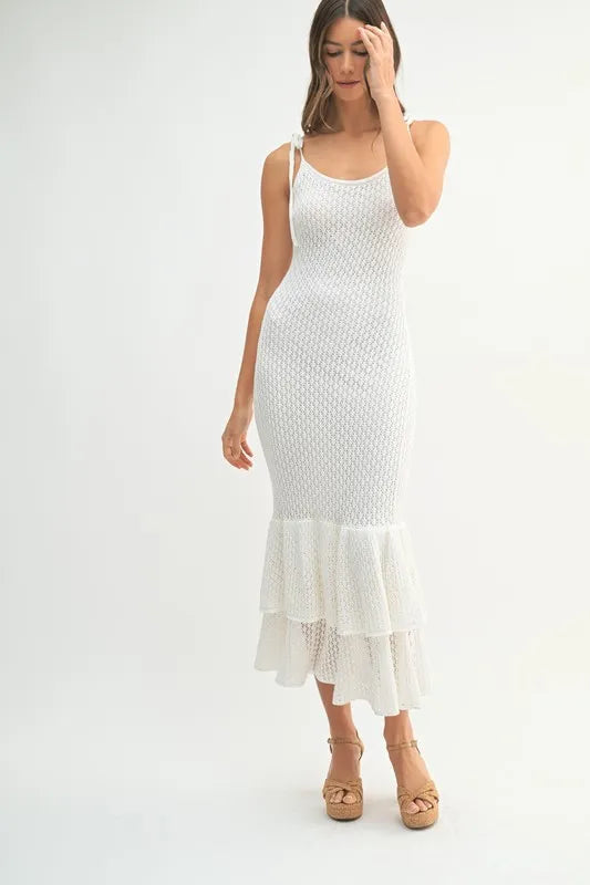 Golden Thread Gown Sleeveless Shoulder Tie Rose Knit Midi Dress