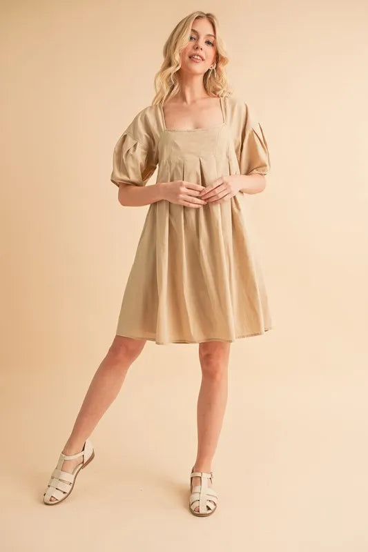 Astral Sheen Square Neck Babydoll Dress with Pockets