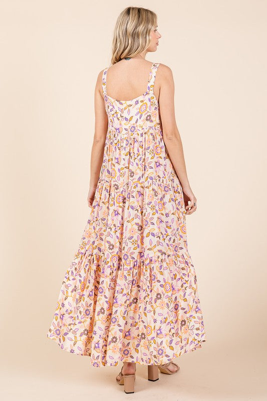 The Petal Flower Print Tiered Sleeveless Empire Maxi Dress