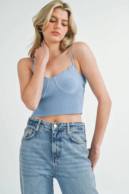 The Élite Silk Scalloped Edge Ribbed Knit Cami