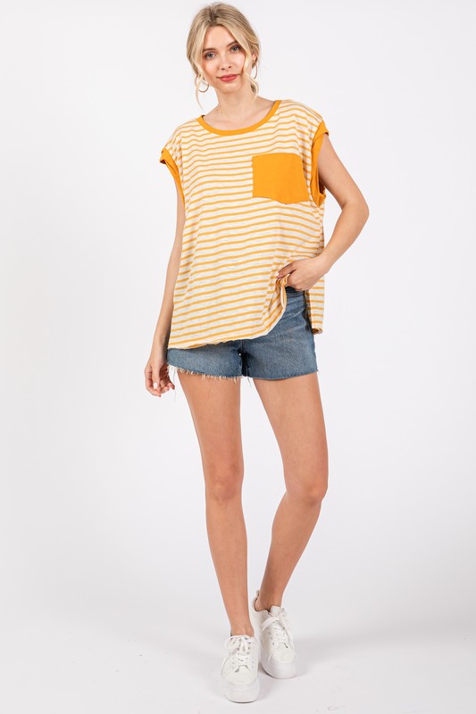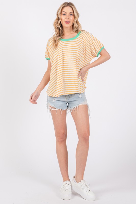Twirl & Twirl Side Slit Striped Cap Sleeve T-Shirt