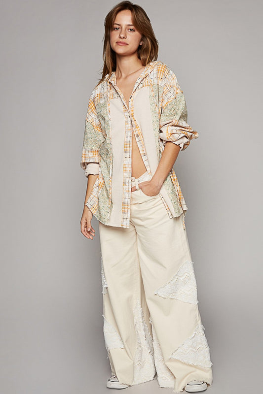 Captivate Full Size Color Block Button-Down Shirt
